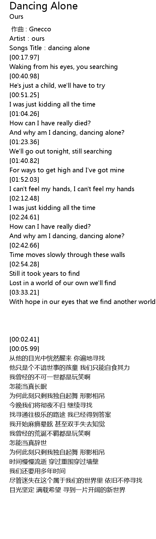 | [00:05.99] | Songs Title:dancing alone |