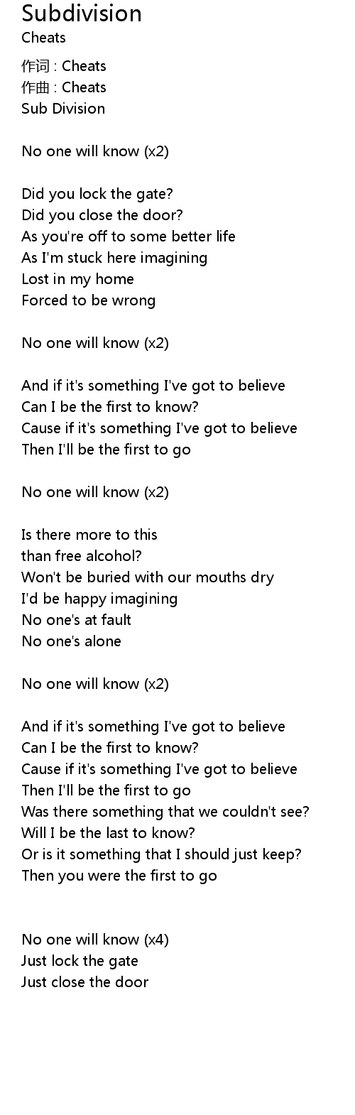 | 作词 : Cheats | |