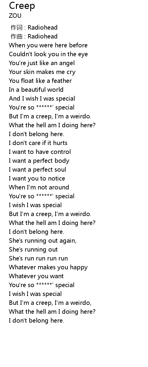 | [01:59.902] | But I'm a creep, I'm a weirdo. |