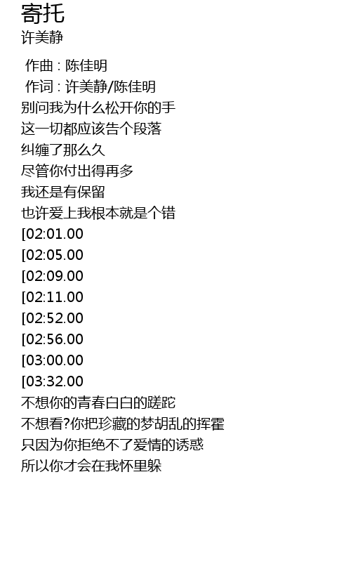 | [00:01.00] | 作词 : 许美静/陈佳明 |
