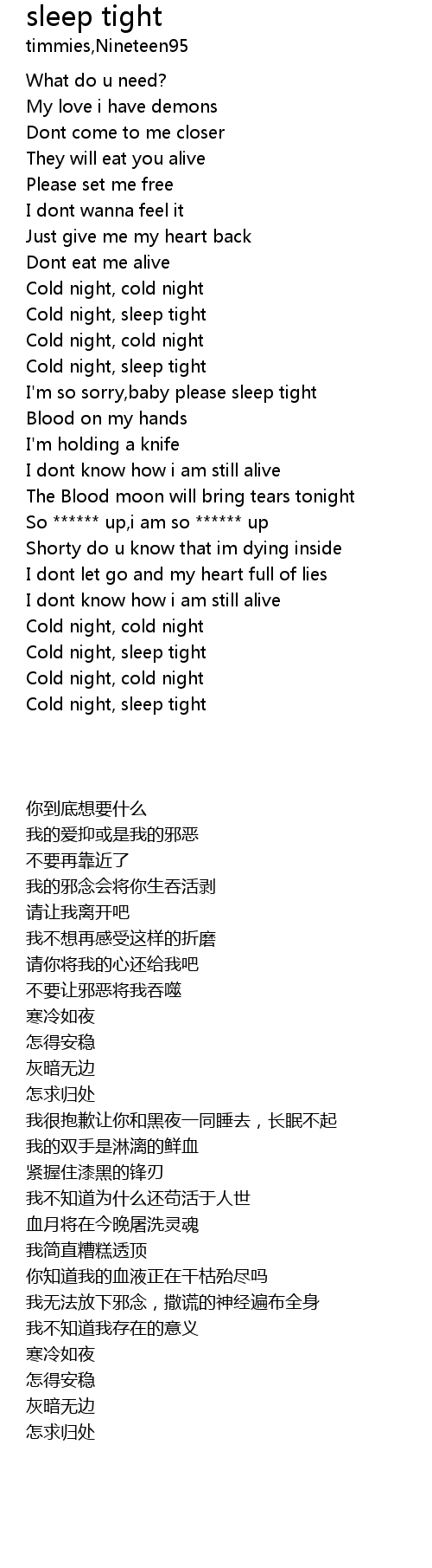 I'm so sorry,baby please sleep tight |
