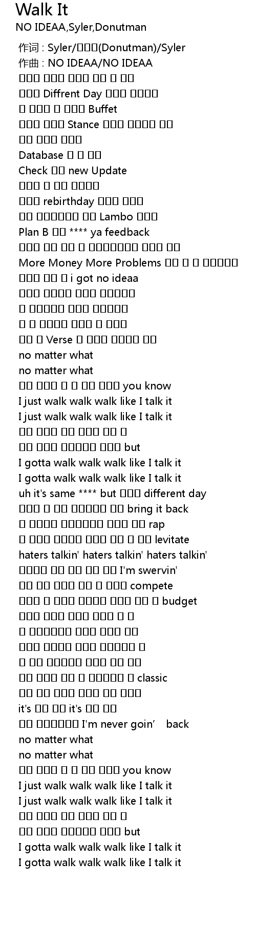 | [01:28.427] | I gotta walk walk walk like I talk it |