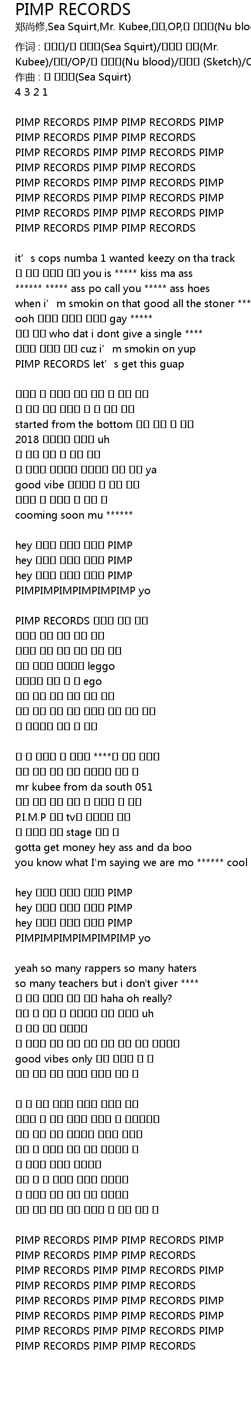 | 作词 : 정상수/씨 스쿼트(Sea Squirt)/미스터 쿠비(Mr. Kubee)/키지/OP/뉴 블러드(Nu blood)/스케치 (Sketch)/Op | |