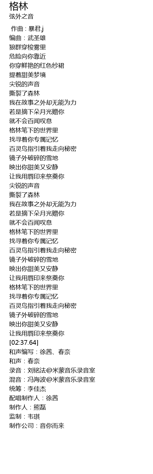 | [02:17.98] | 格林笔下的世界里 |