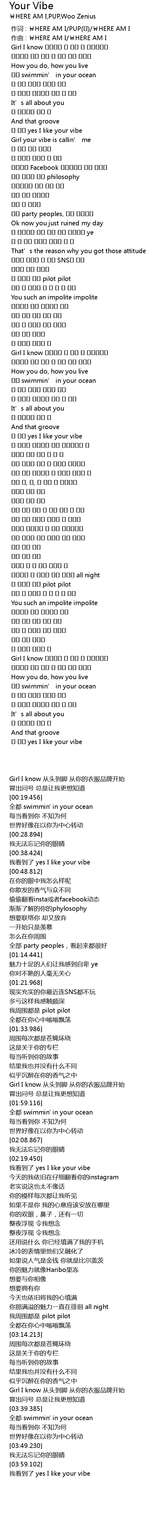 | [04:03.413] | 난 봤어 yes I like your vibe |