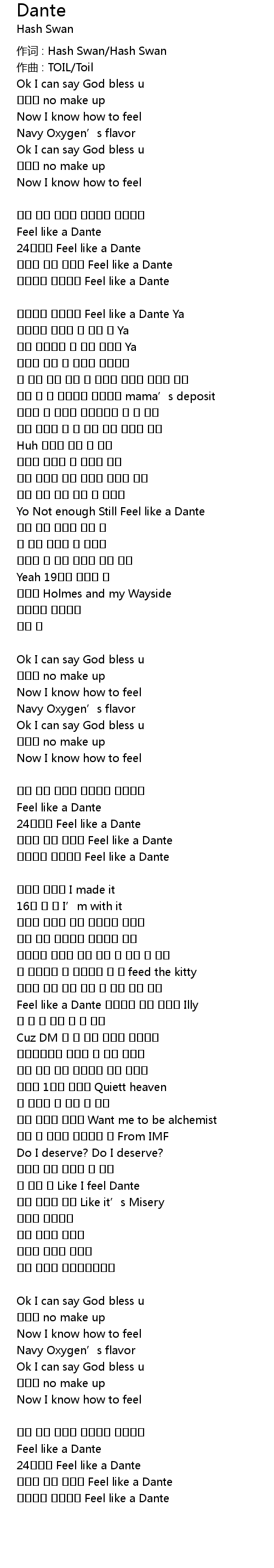 | Yo Not enough Still Feel like a Dante | |