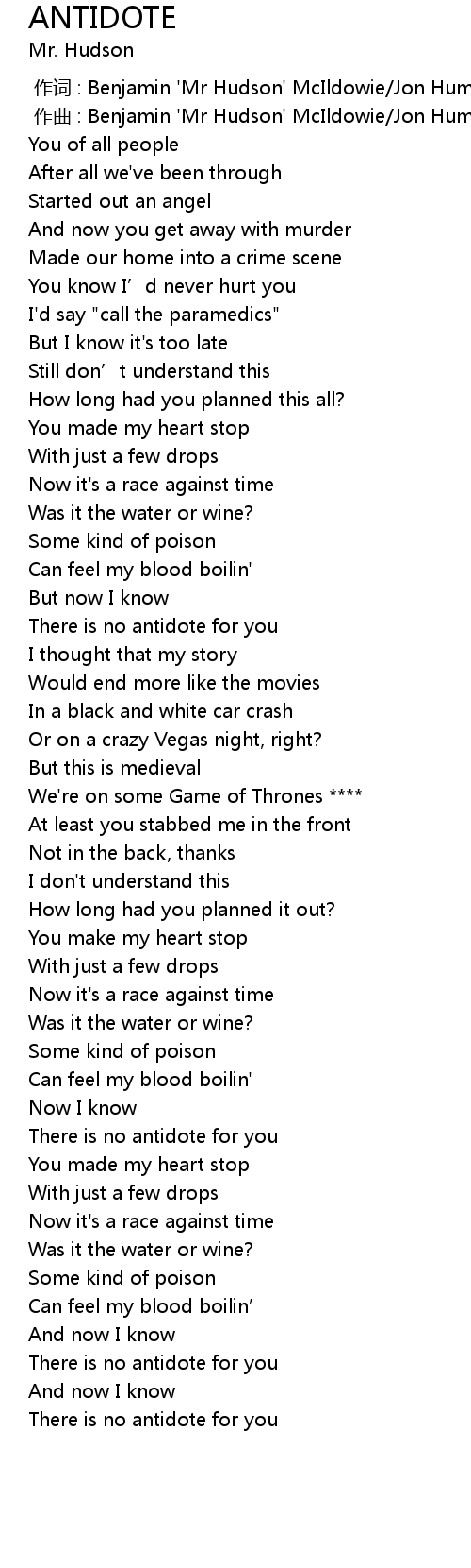 | [00:00.000] | zuò cí : Benjamin ' Mr Hudson' McIldowie Jon Hume |