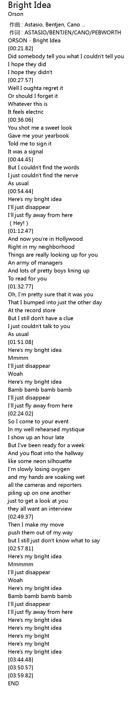 | [00:00.00] | 作词 : ASTASIO/BENTJEN/CANO/PEBWORTH |