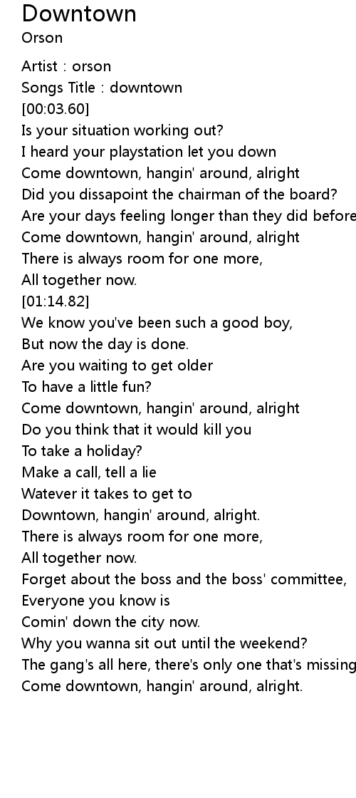 | [00:51.45] | Come downtown, hangin' around, alright |