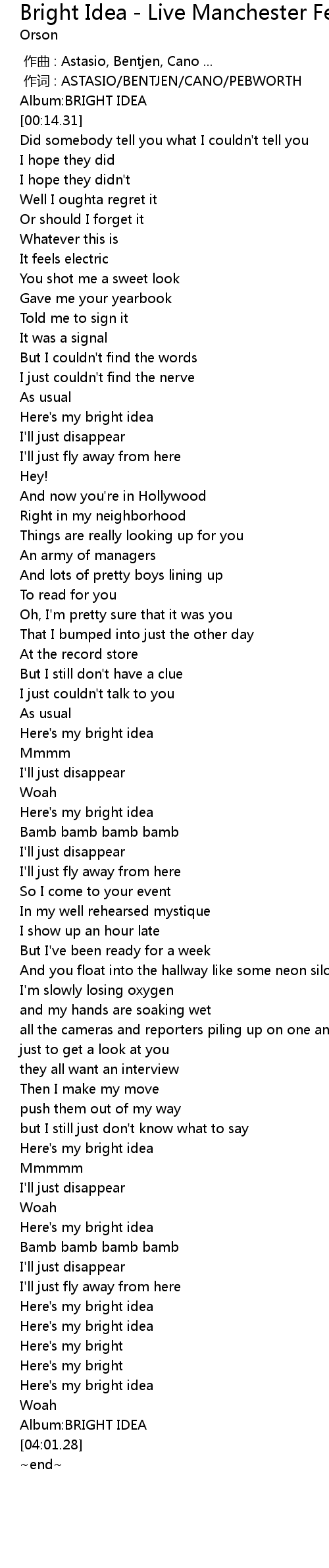 | [00:07.64] | Album: BRIGHT IDEA |