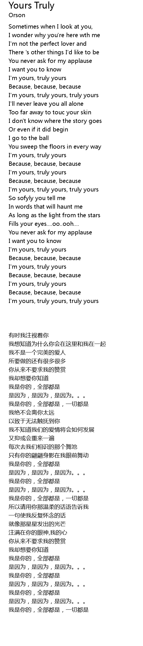 I'm yours, truly yours, truly yours |