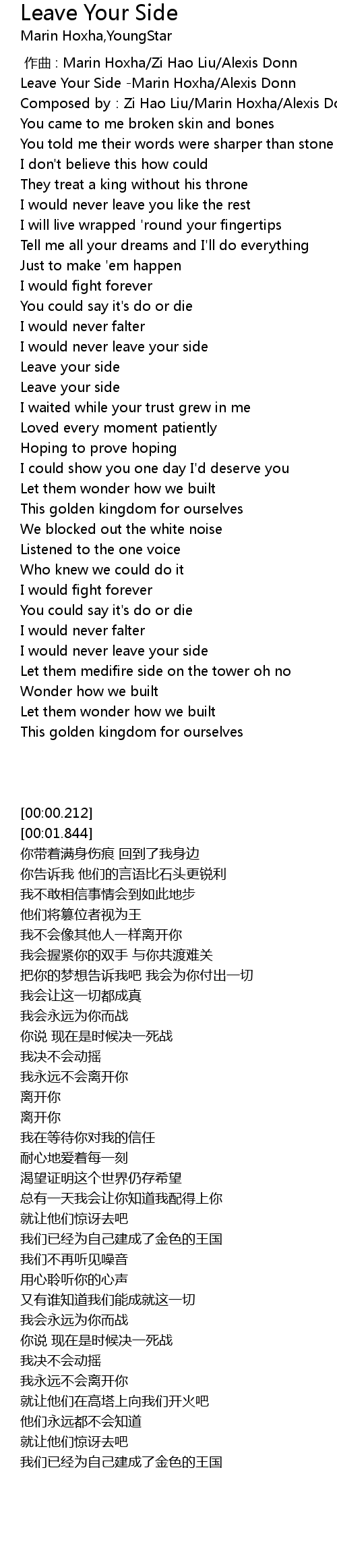 | [00:00.212] | Leave Your Side Marin Hoxha Alexis Donn |