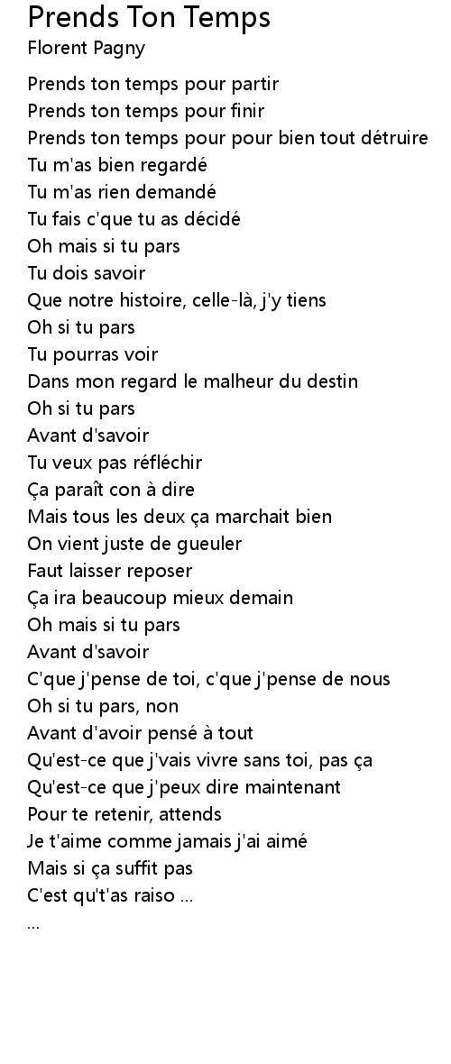 | 歌曲 | Prends Ton Temps |