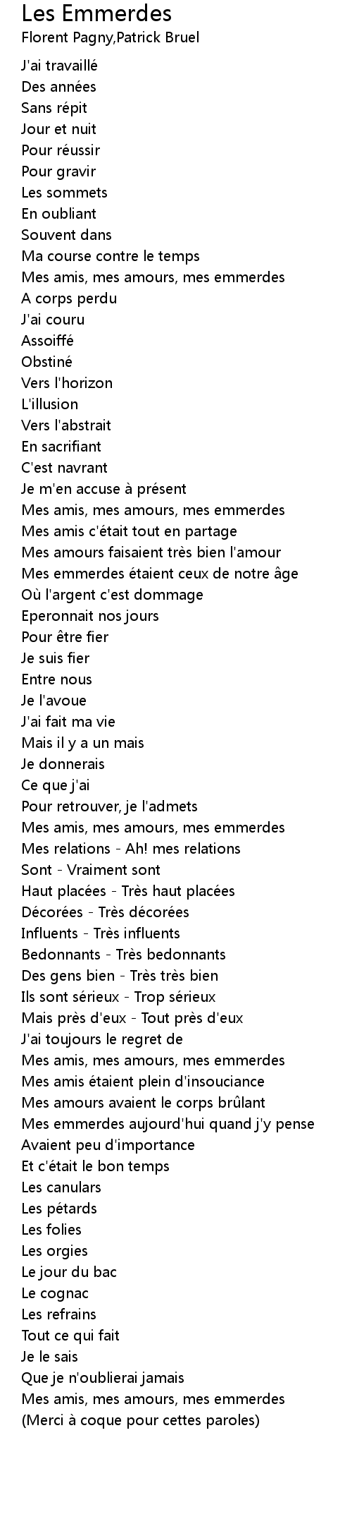 | Merci a coque pour cettes paroles |