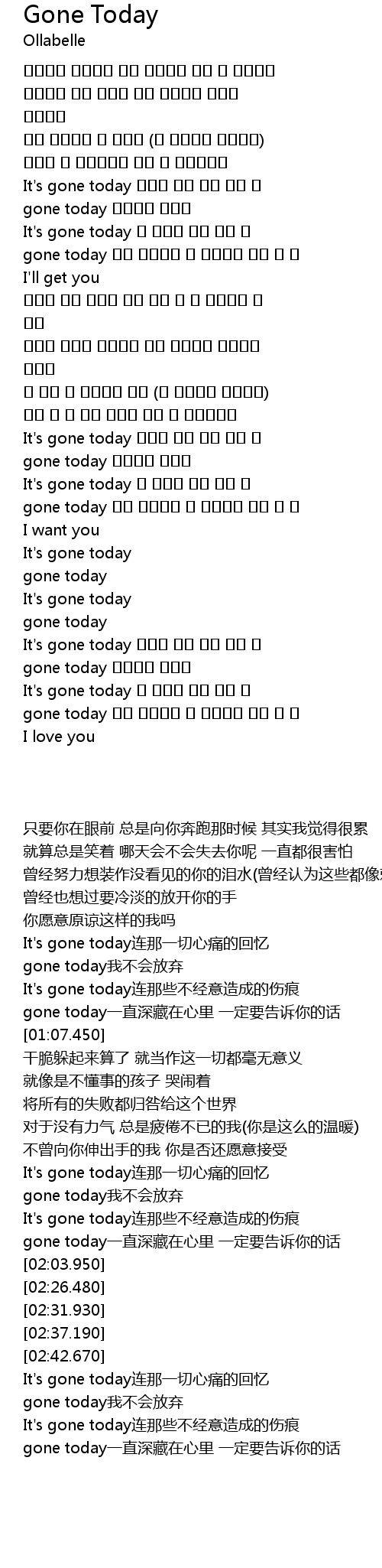 | [01:56.700] | gone today 깊이 간직했던 꼭 들려주고 싶던 그 말 |