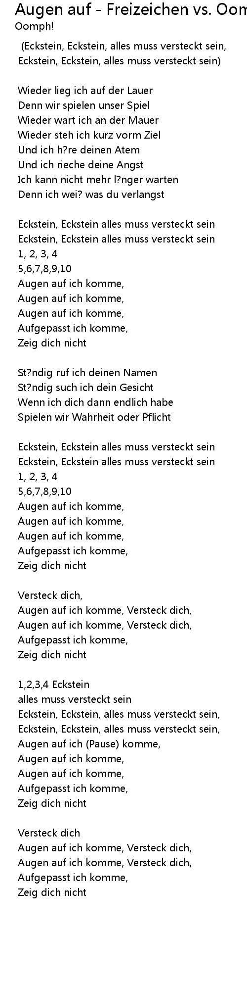 | (Eckstein, Eckstein, alles muss versteckt sein, | |