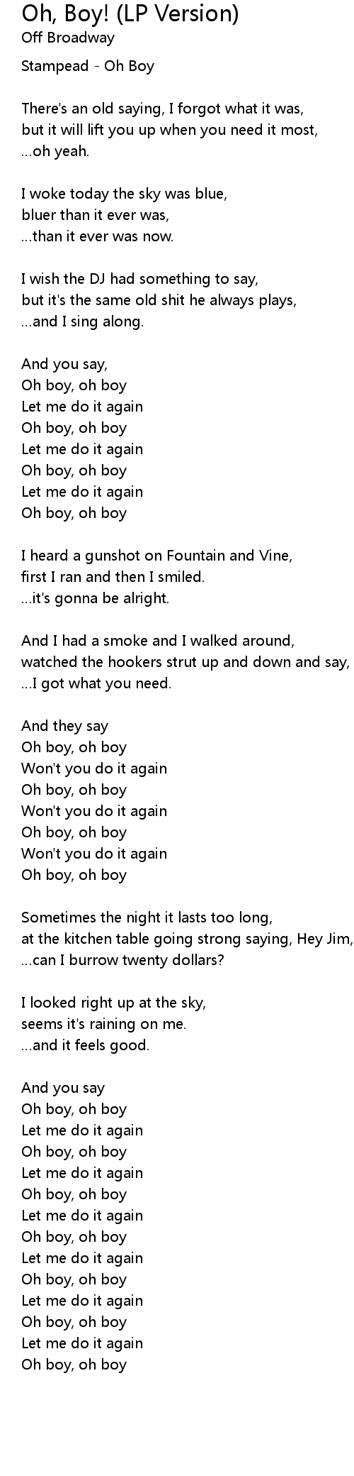 | 歌曲 | Oh, Boy! (LP Version) |