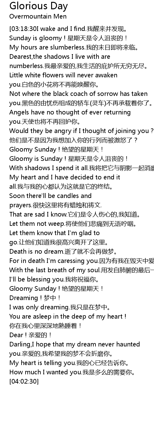| [01:24:00] | Gloomy is Sunday ! 星期天是令人沮丧的! |