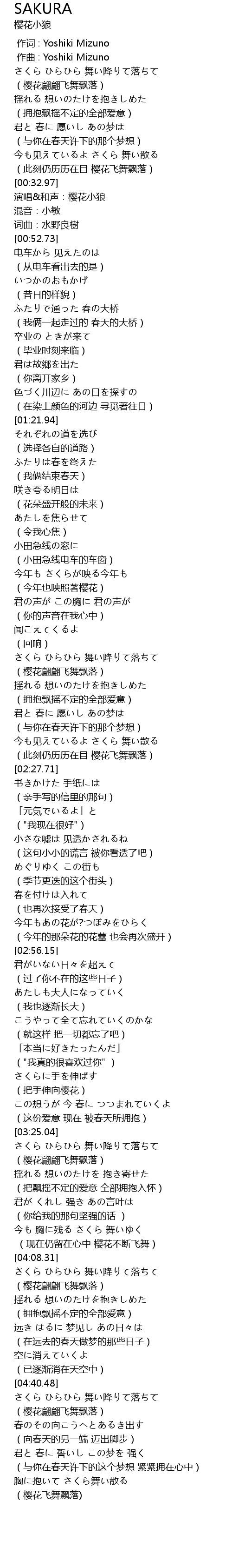 | [02:18.40] | (此刻仍历历在目 樱花飞舞飘落) |