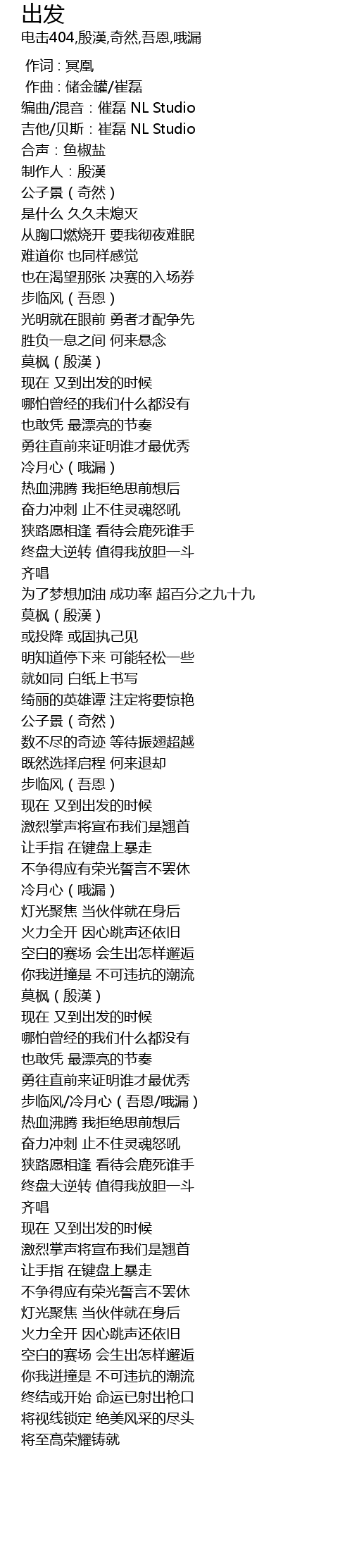 | [00:06.22] | 编曲/混音:催磊 NL Studio |
