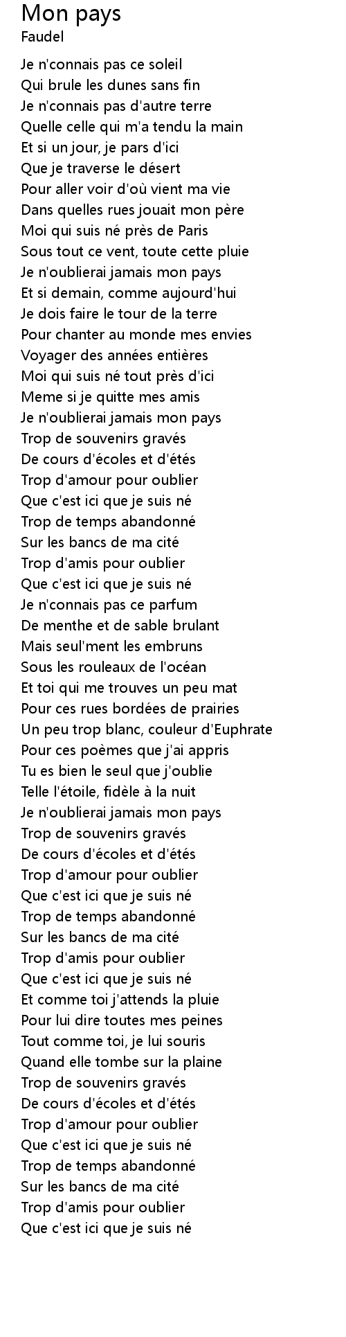 | 歌曲 | Mon pays |