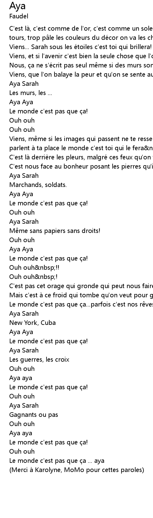| Merci à Karolyne, MoMo pour cettes paroles |