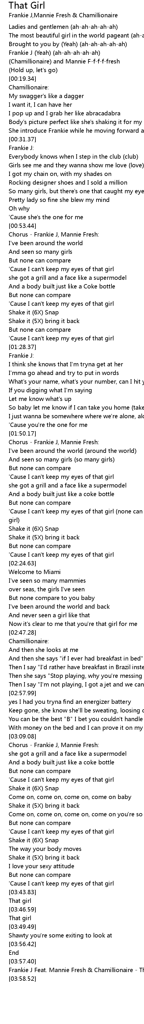 | [03:58.02] | Frankie J Feat. Mannie Fresh & Chamillionaire - That Girl |