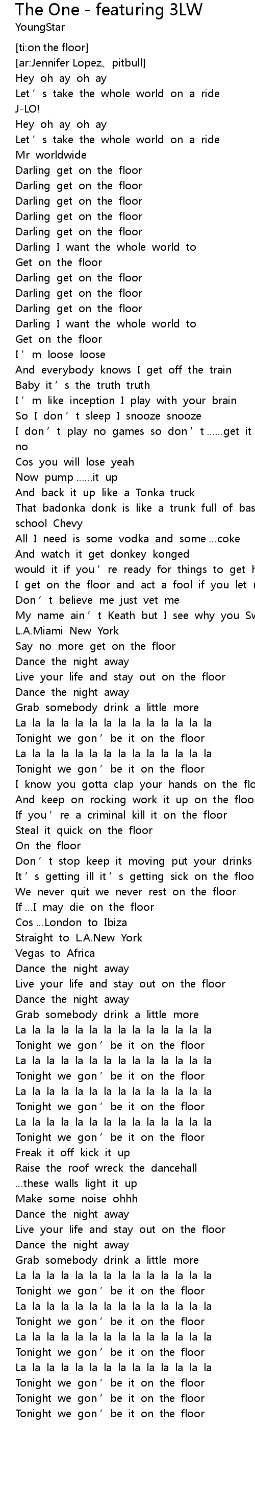 | [04:04.915] | Tonight we gon ' be it on the floor |