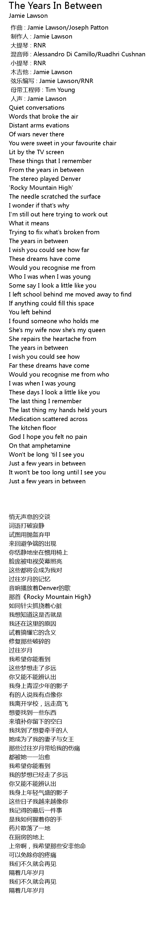 | 歌曲 | The Years In Between |