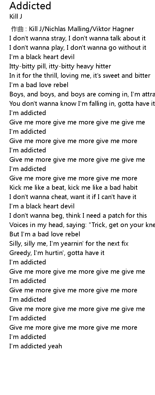 | [01:51.86] | Silly, silly me, I' m yearnin' for the next fix |