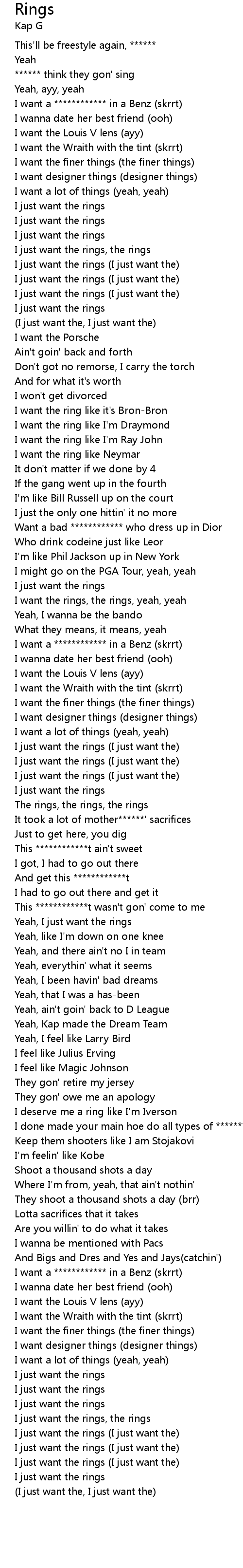 | [01:26.44] | I want the rings, the rings, yeah, yeah |