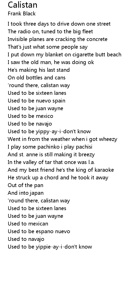 'round there, calistan way |