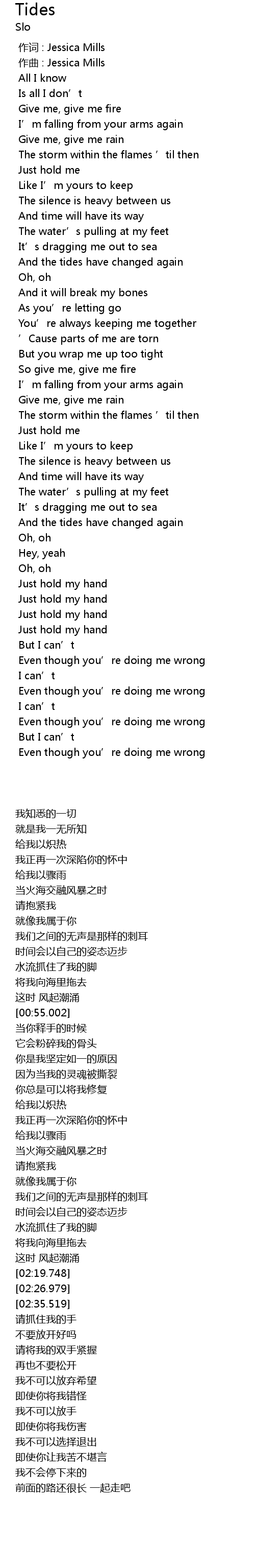 | [00:00.000] | 作词 : Jessica Mills |