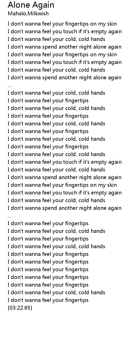 | [00:15.54] | I don't wanna feel your cold, cold hands |