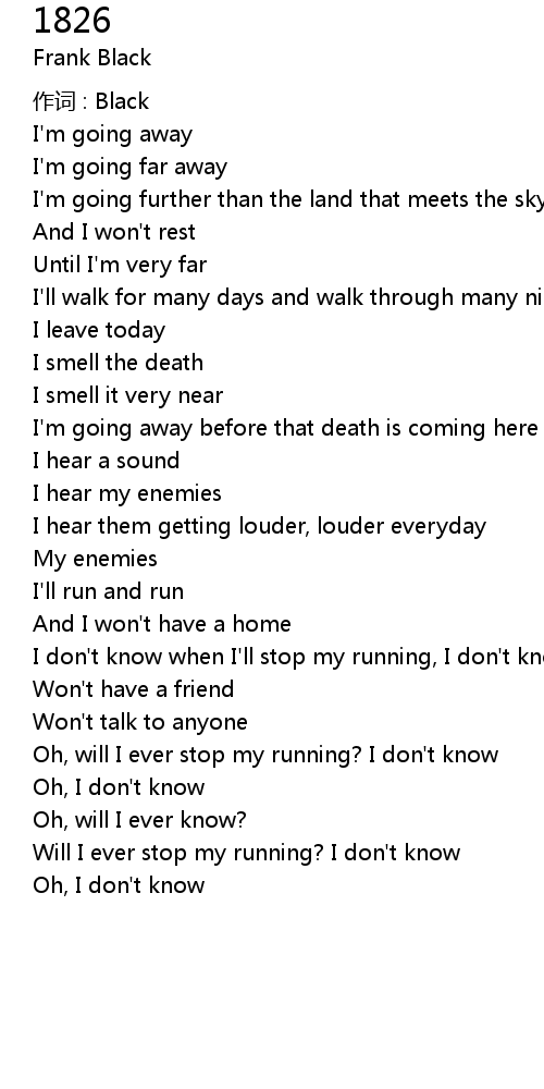 | I don' t know when I' ll stop my running, I don' t know | |