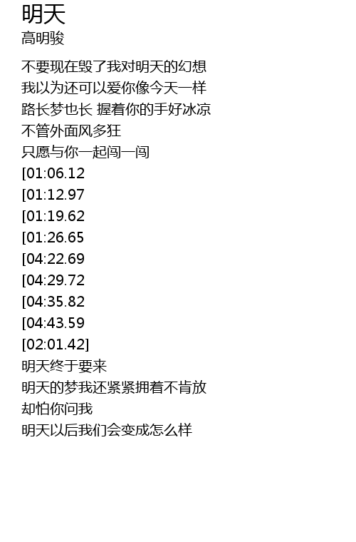 | [03:36.86][01:12.97] | 我看明天的路总是有一个方向 |