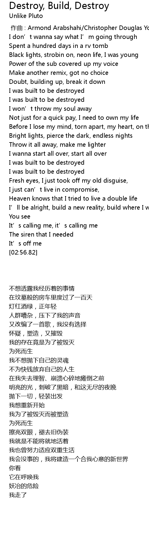 | [01:37.81] | 我为了被毁灭而被塑造 |