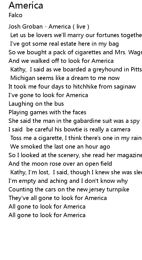| [03:07.54] | They've all gone to look for America |