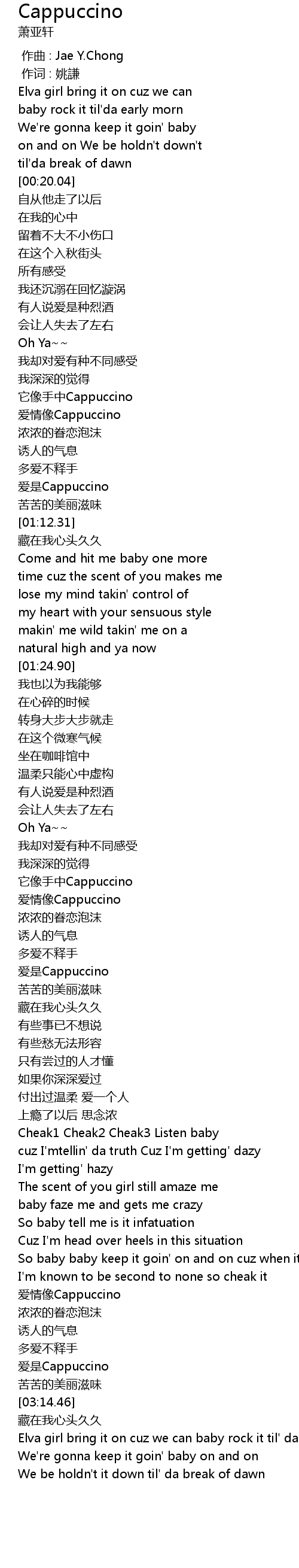 | [02:11.42] | ai shi Cappuccino |
