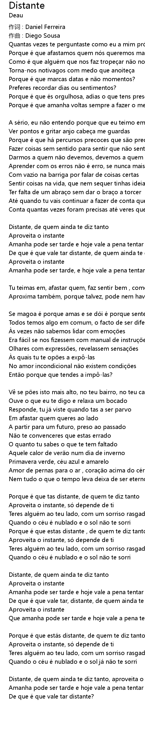 | Distante, de quem ainda te diz tanto, aproveita o instante | |