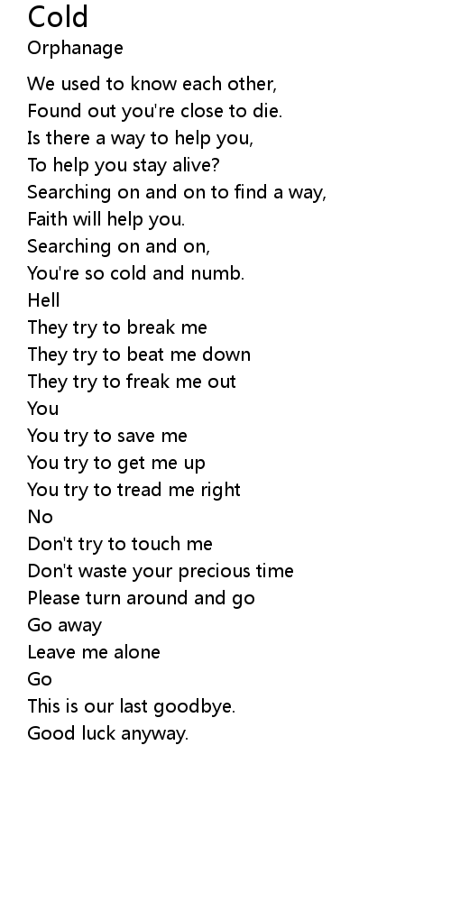 | You're so cold and numb. | |