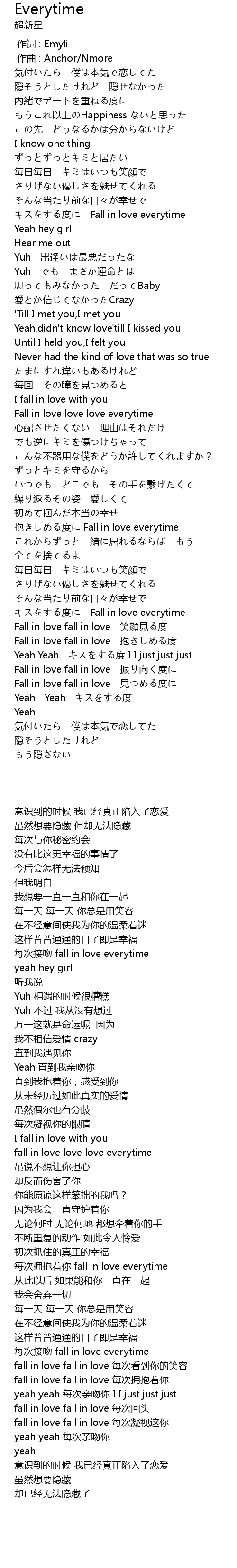 | [01:15.233] | キスをする度に Fall in love everytime |