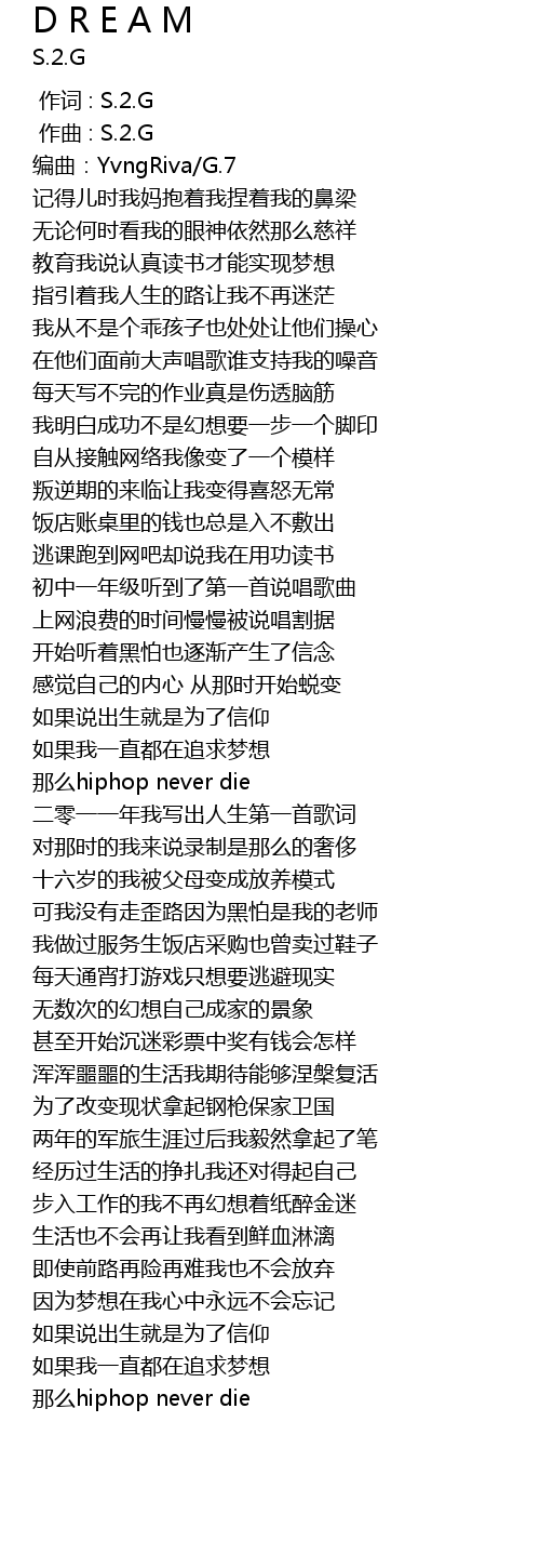 | [00:00.000] | 作词 : S.2.G |