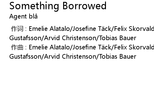 | [00:00.000] | zuò qǔ : Emelie Alatalo Josefine T ck Felix Skorvald Lucas Gustafsson Arvid Christenson Tobias Bauer |