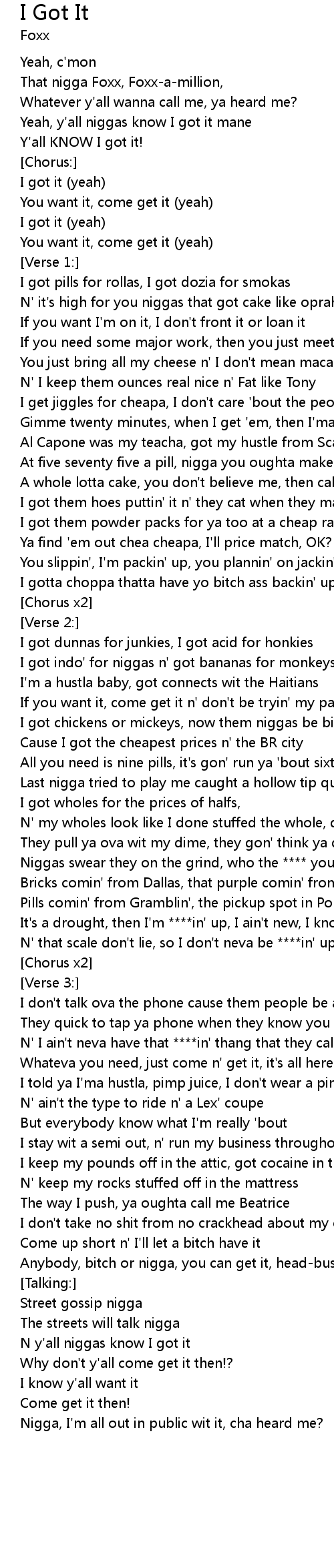 N y'all niggas know I got it |