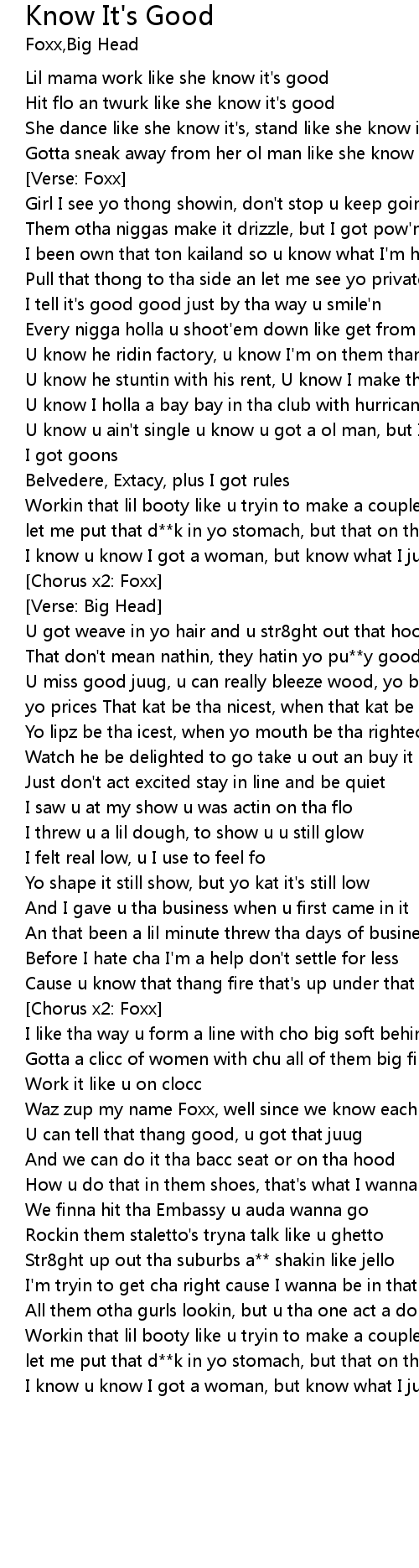 | She dance like she know it's, stand like she know it's good | |