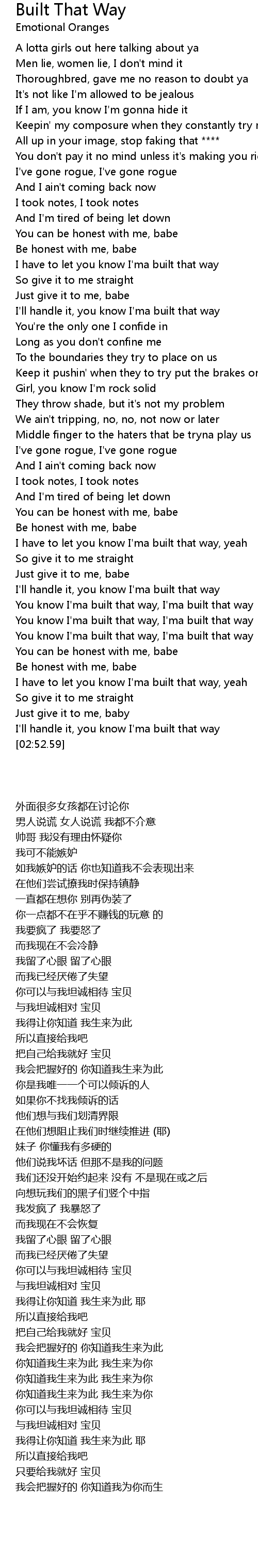 I have to let you know I'ma built that way |