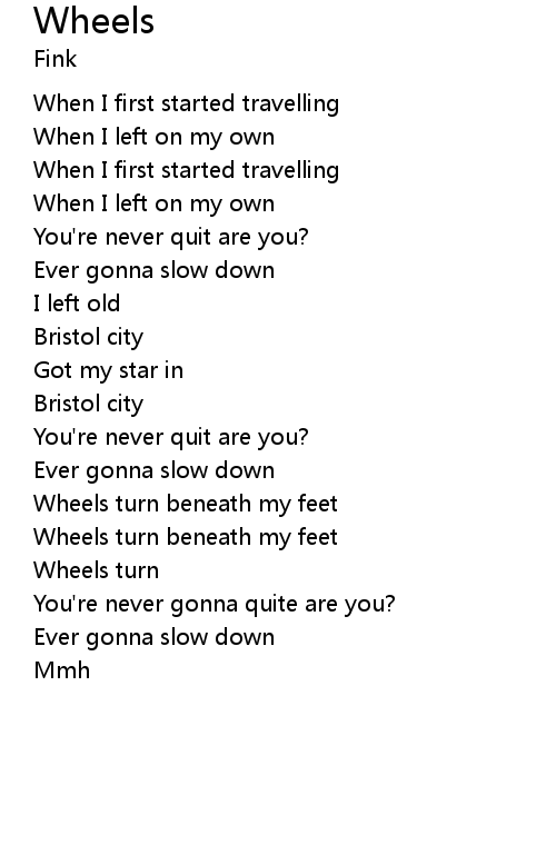 | 歌曲 | Wheels |