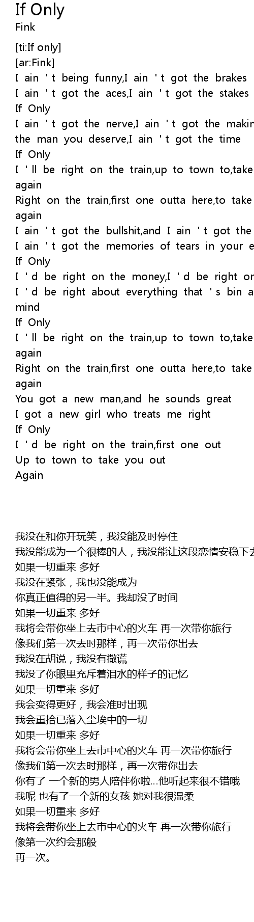 | [01:11.85] | I ll be right on the train, up to town to, take you out again |