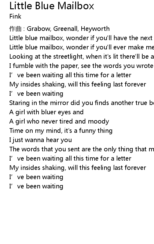 | Little blue mailbox, wonder if you' ll have the next letter | |